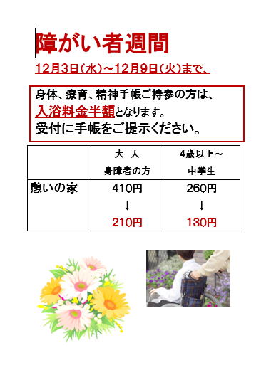 入浴回数券(身障者・養育手帳所持者)