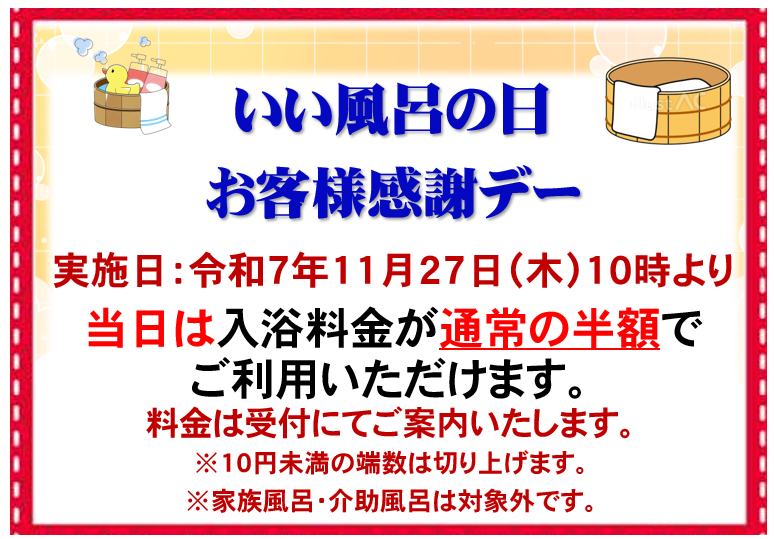 2025年7月1日(火)より入浴料金を改定させていただくことになりました。