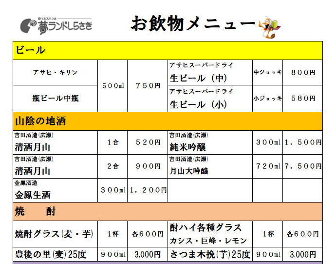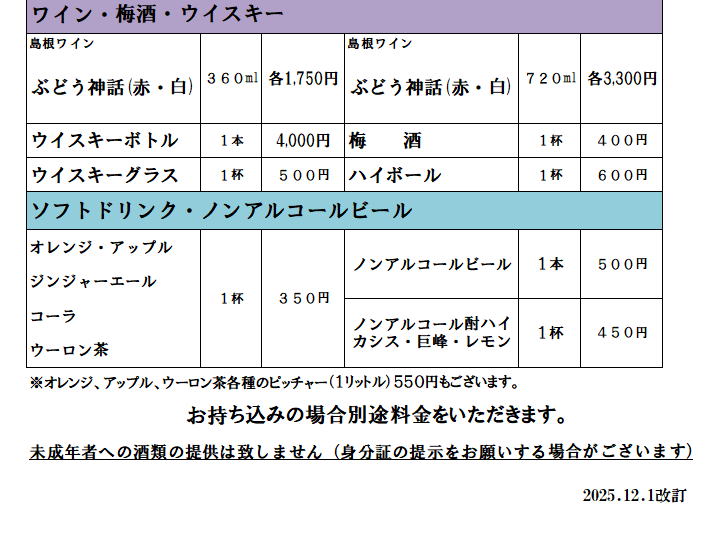 飲料の料金を下記の通りとさせていただきます。お客様にはご負担をおかけし大変恐縮ではございますが、