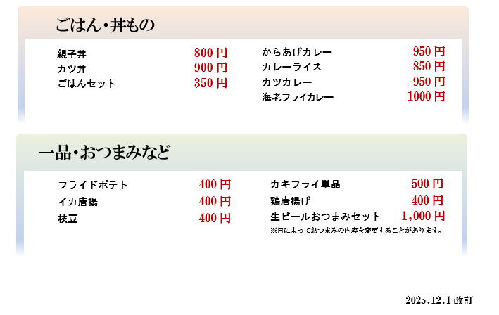 | ■ 【お食事処】レストランメニューと飲料の価格変更について - 25.11.24 |