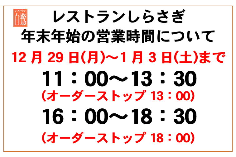 ①11:00~14:30(14:00オーダーストップ)②17:00~20:30(20:00オーダーストップ)